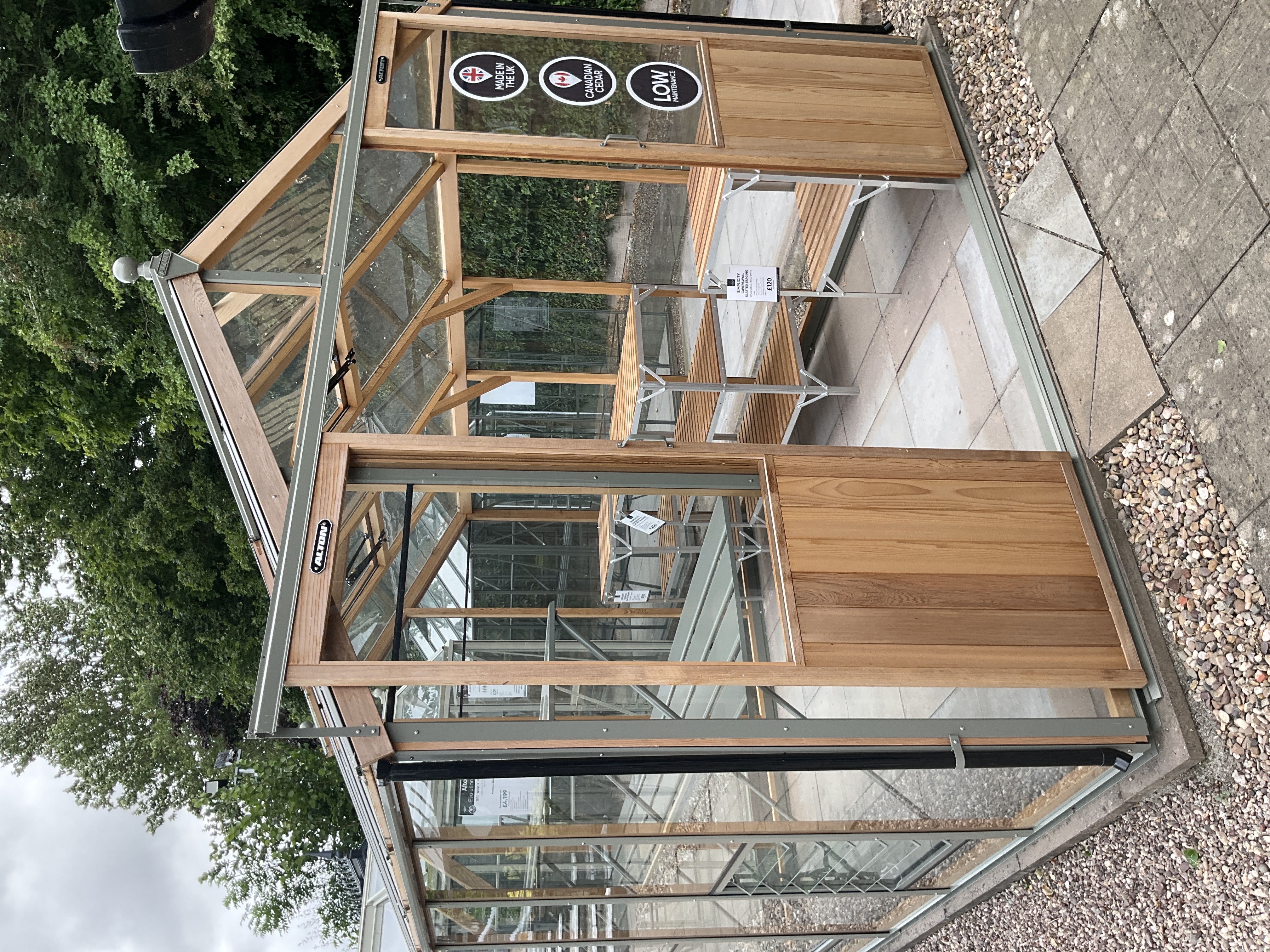 We factory treat your Alton Evolution greenhouse in a clear treatment - thus not masking the natural colour variation of the cedar wood. In time, your greenhouse will mellow into a silvery colour which is so distinctive to cedar. The Moss colour of the metal components is designed to blend in perfectly with this mature silvery colour.